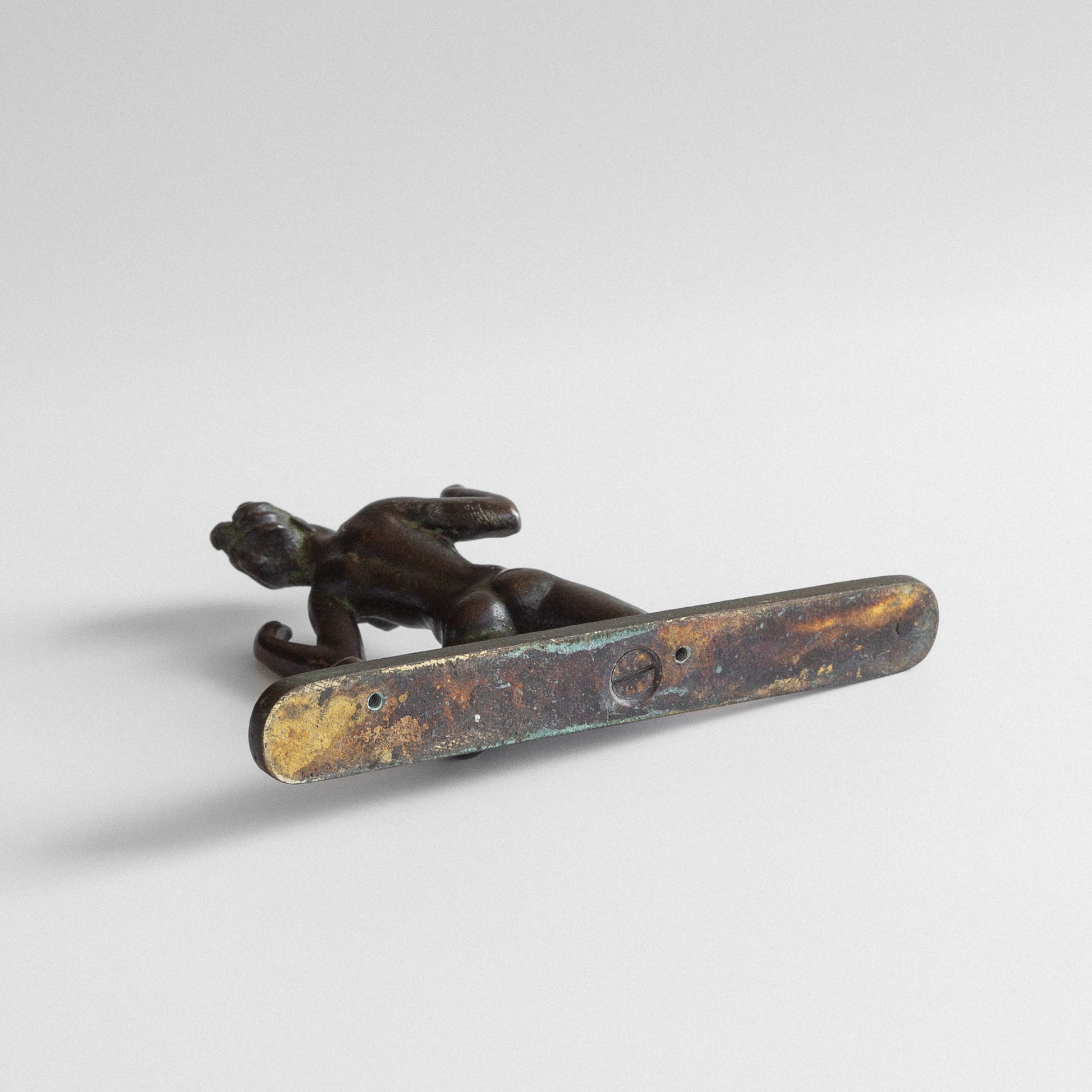 The screw holes under the base suggest it may have originally been part of a larger piece, possibly an ornament on a mirror or a similar item.