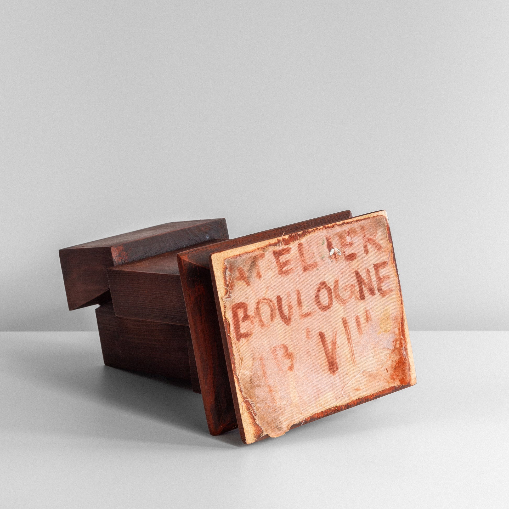 Base bottom inscribed "Atelier Boulogne" and indistinctly numbered. Though details about Atelier Boulogne remain scarce, the craftsmanship displayed in this piece suggests a profound understanding and mastery of wood as a medium.