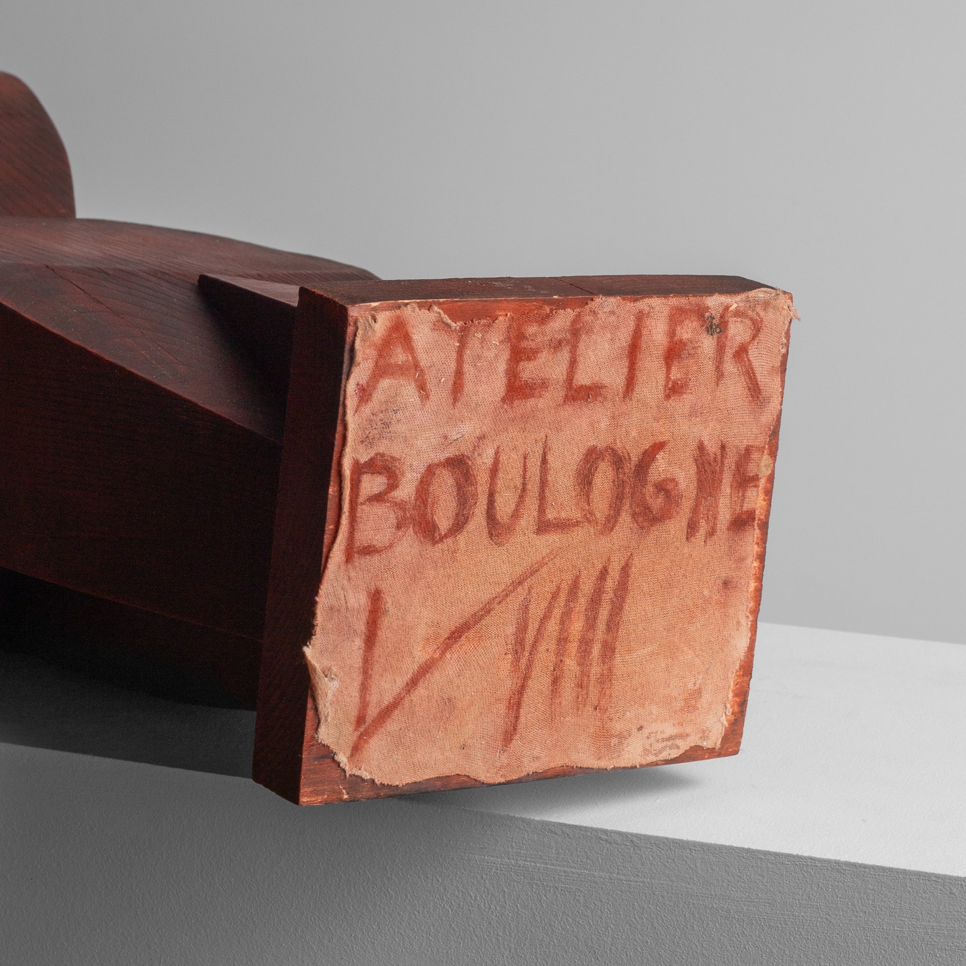 Base bottom inscribed "Atelier Boulogne" and indistinctly numbered. Though details about Atelier Boulogne remain scarce, the craftsmanship displayed in this piece suggests a profound understanding and mastery of wood as a medium.