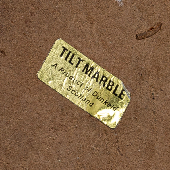 A marble table lamp crafted in Scotland, featuring green-grey and golden hues characteristic of Dunkeld marble. Its elegant obelisk shape is beautifully chiseled, with a textured, rough stone finish that gives it a timeless appeal.