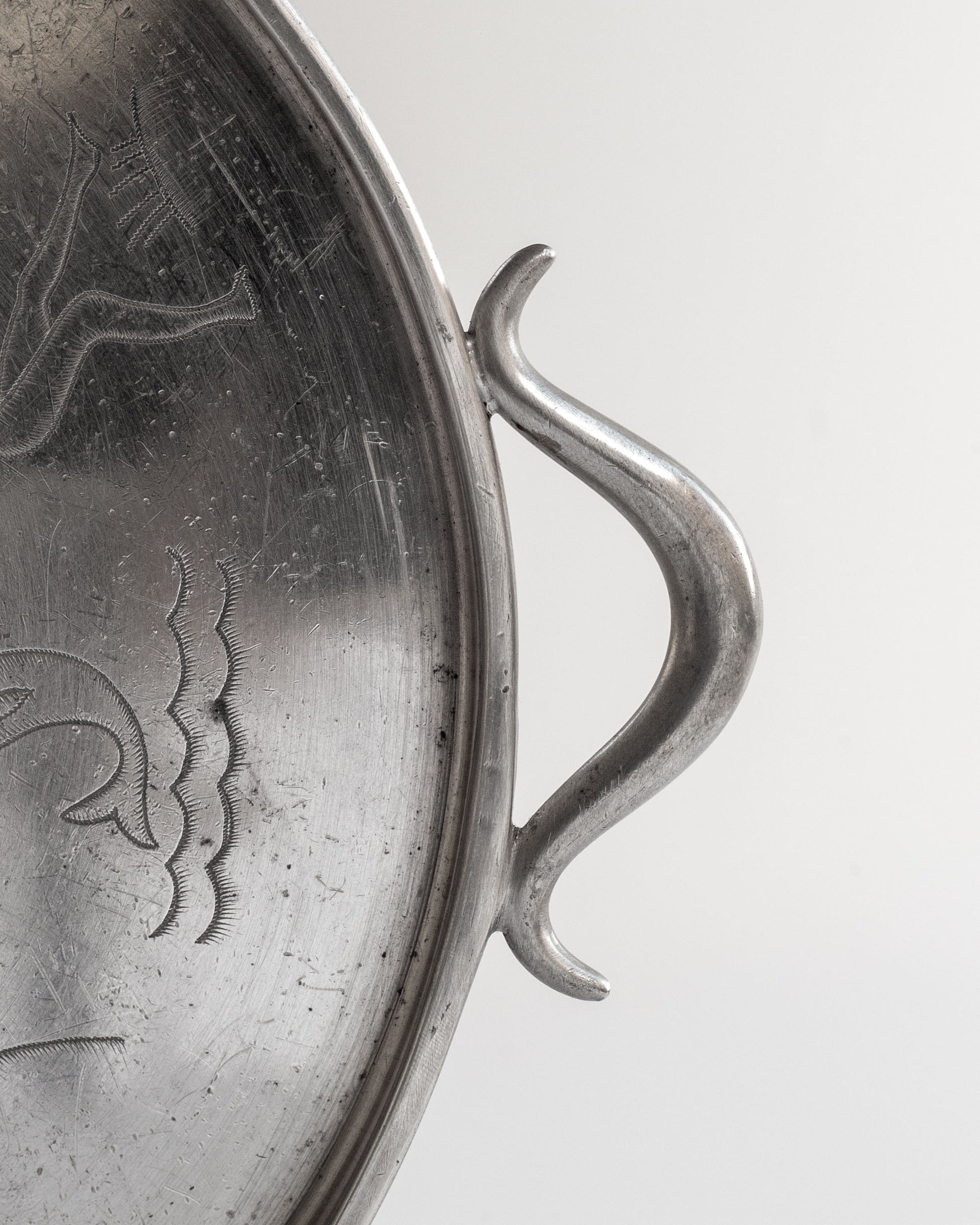 Nils Fougstedt was a Swedish sculptor and craftsman, renowned for his pewter work featuring intricate engravings. As co-founder of Svenskt Tenn Fougstedt played a pivotal role in Swedish design history. His artistic journey began with the Swedish Grace style of the 1920s before evolving toward functionalist principles. Early works from his career, particularly from the 1920s and 1930s, are today highly collectable. His pieces are held in the collection of Nationalmuseum, Stockholm.