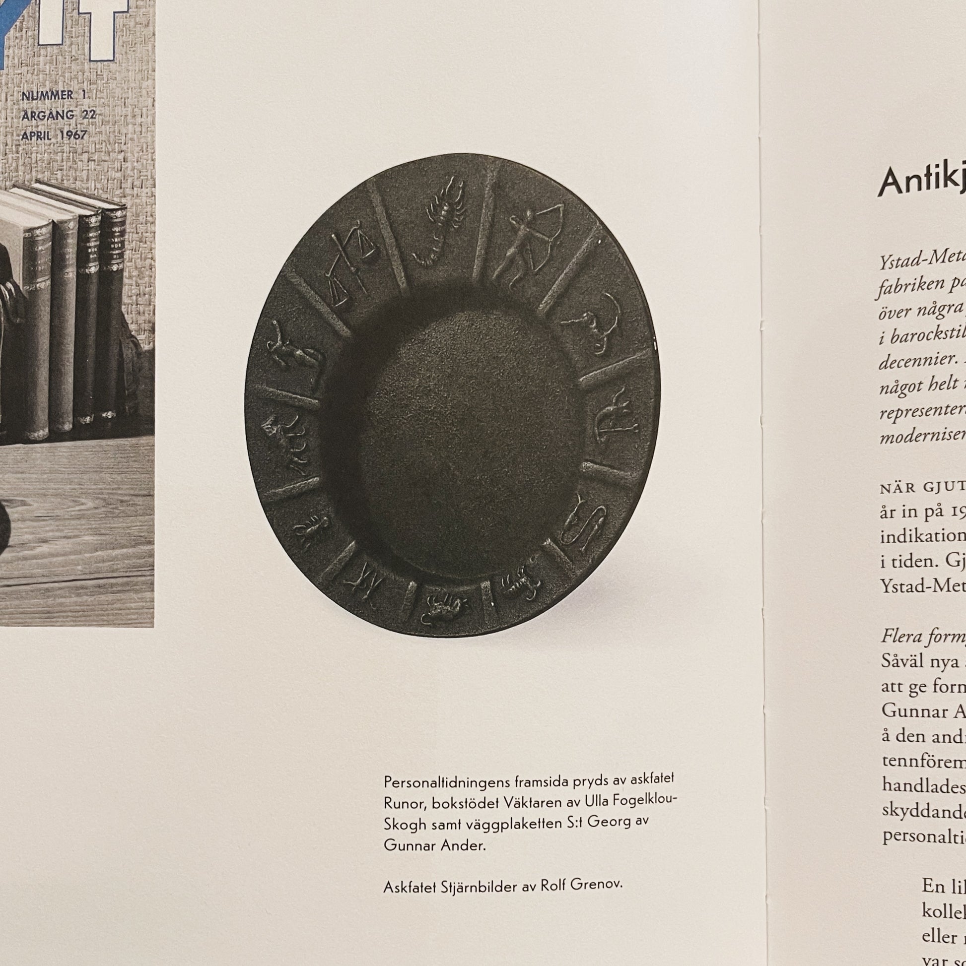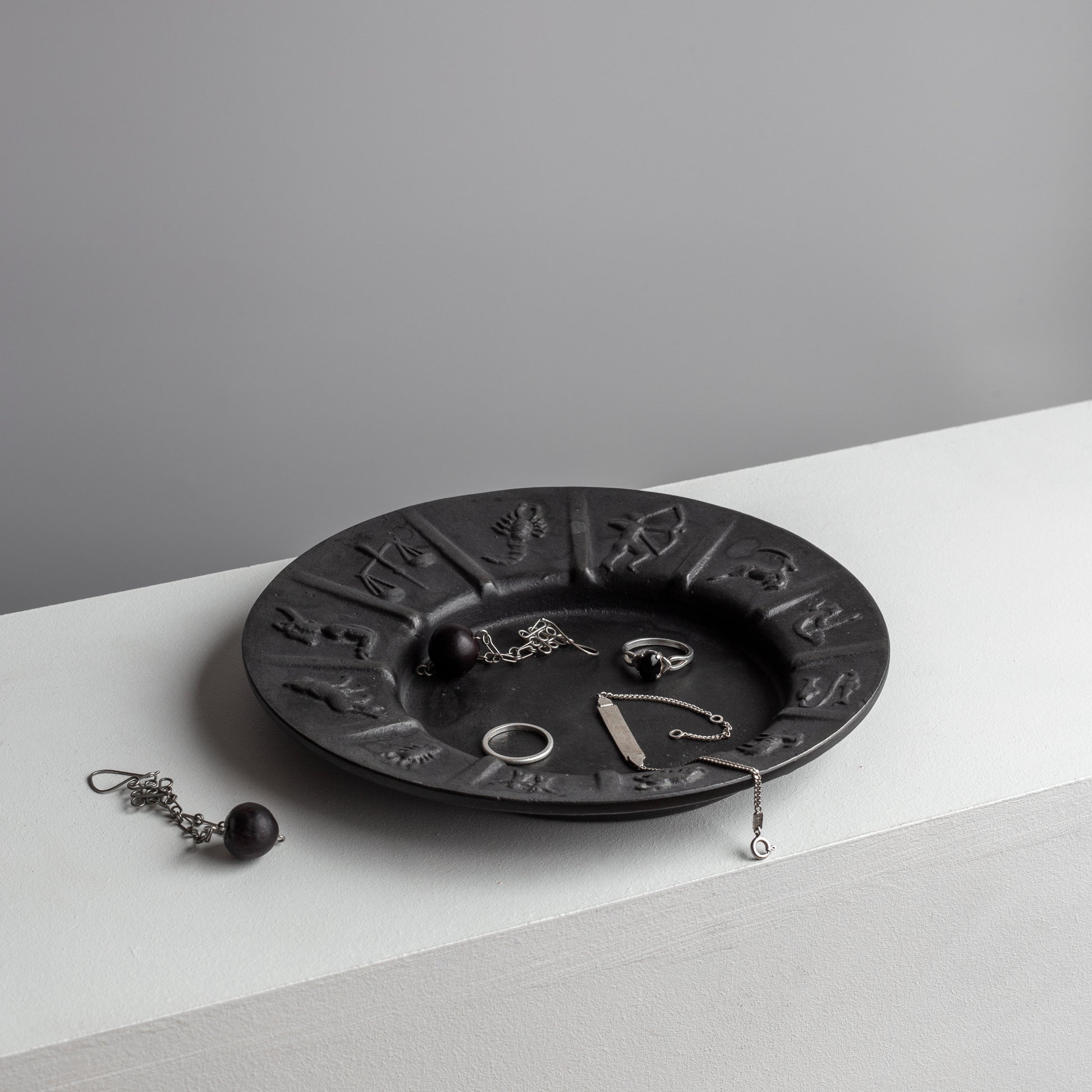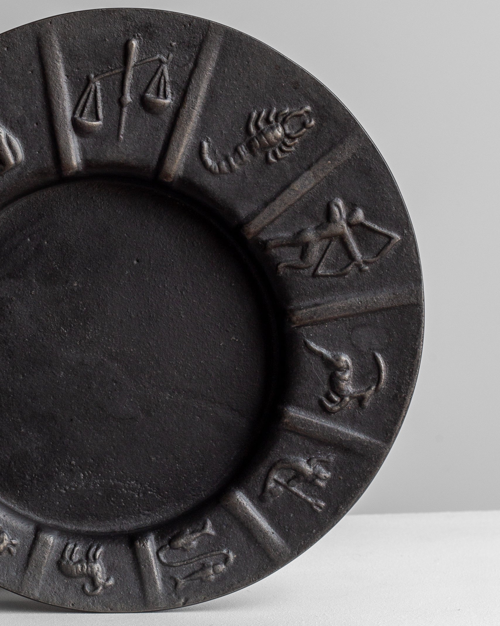 A decorative dish featuring a captivating zodiac design, created by Rolf Grenov (1924-2019) for Ystad Metall in the 1960s.