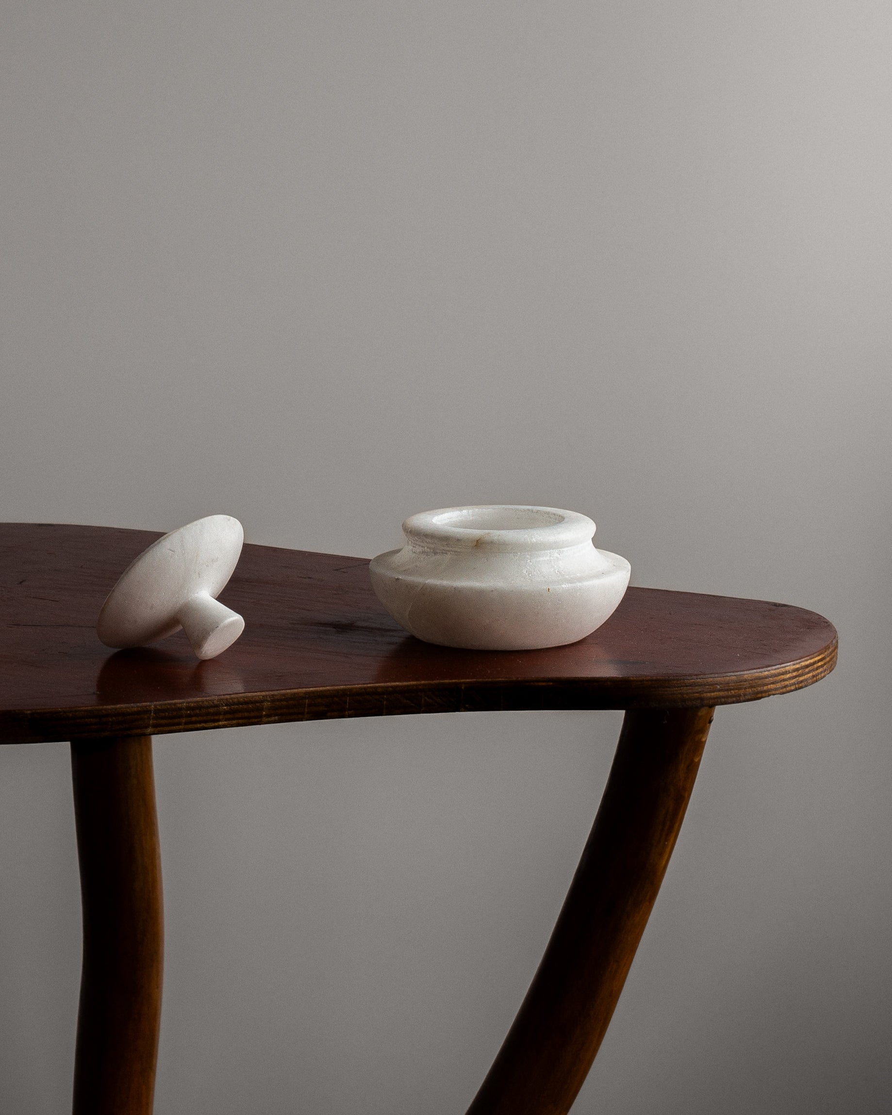 Set of two hand crafted lidded jars in Italian alabaster, c. 1970.