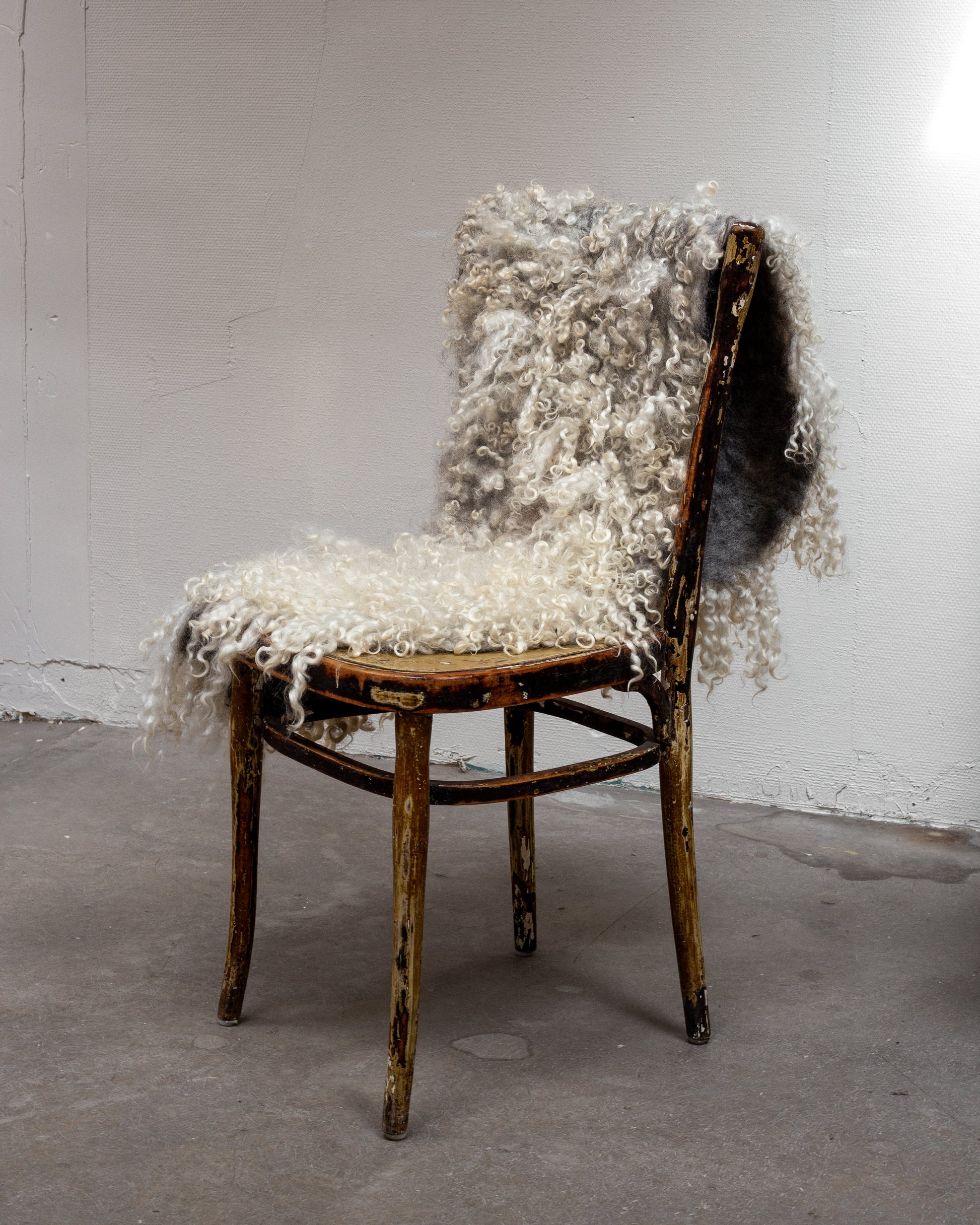 This beautiful felted sheepskin come from the island of Gotland, Sweden. Gotlandic sheepskins are known for their gray and curly fur.