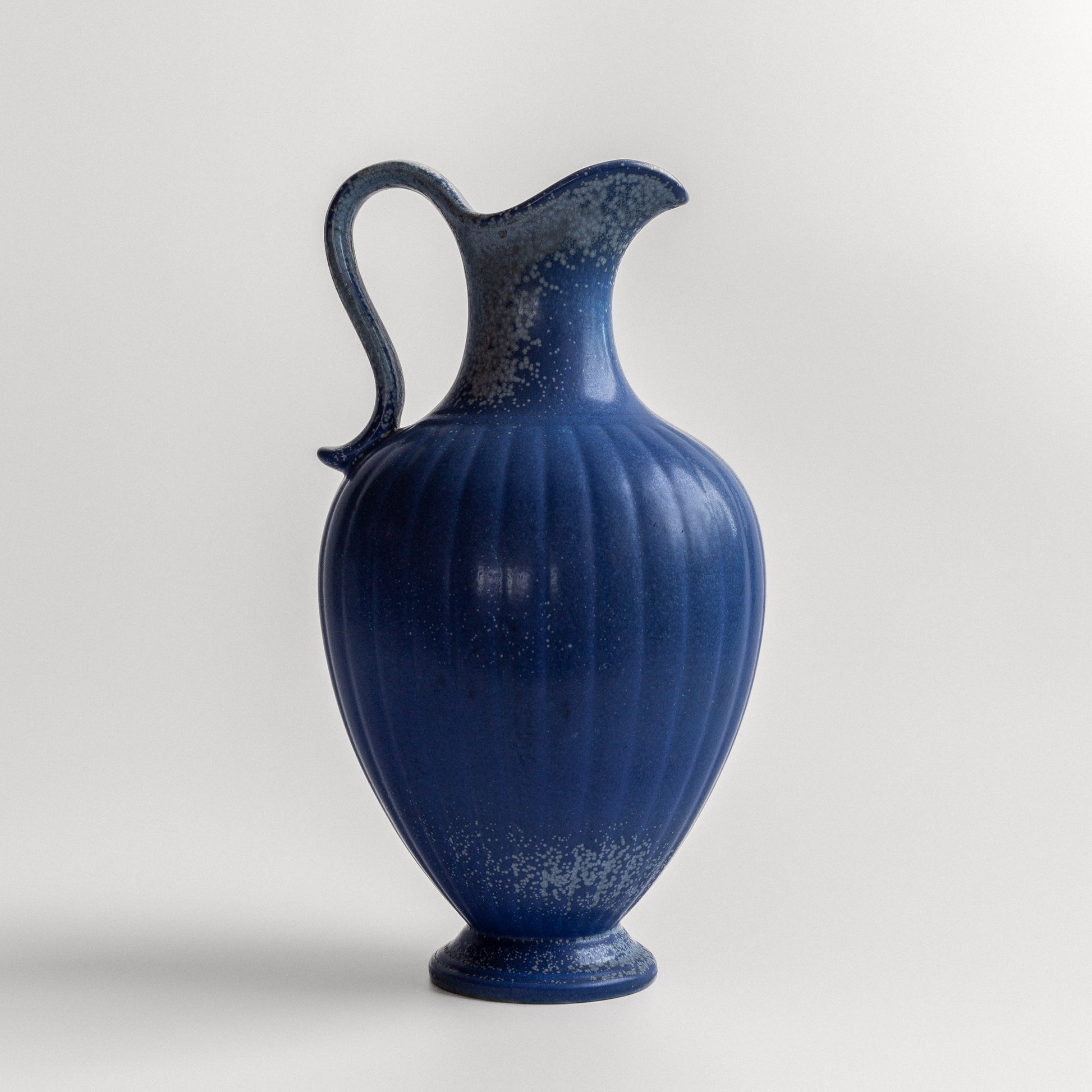 Large Gunnar Nylund stoneware jug with exceptional blue, matte glazing.