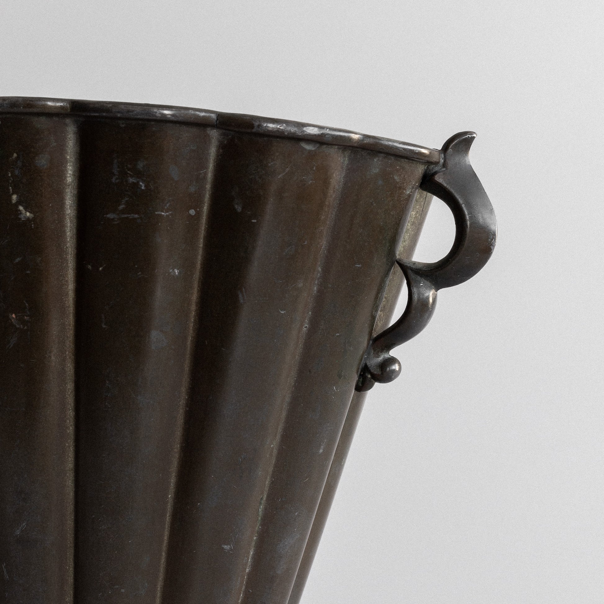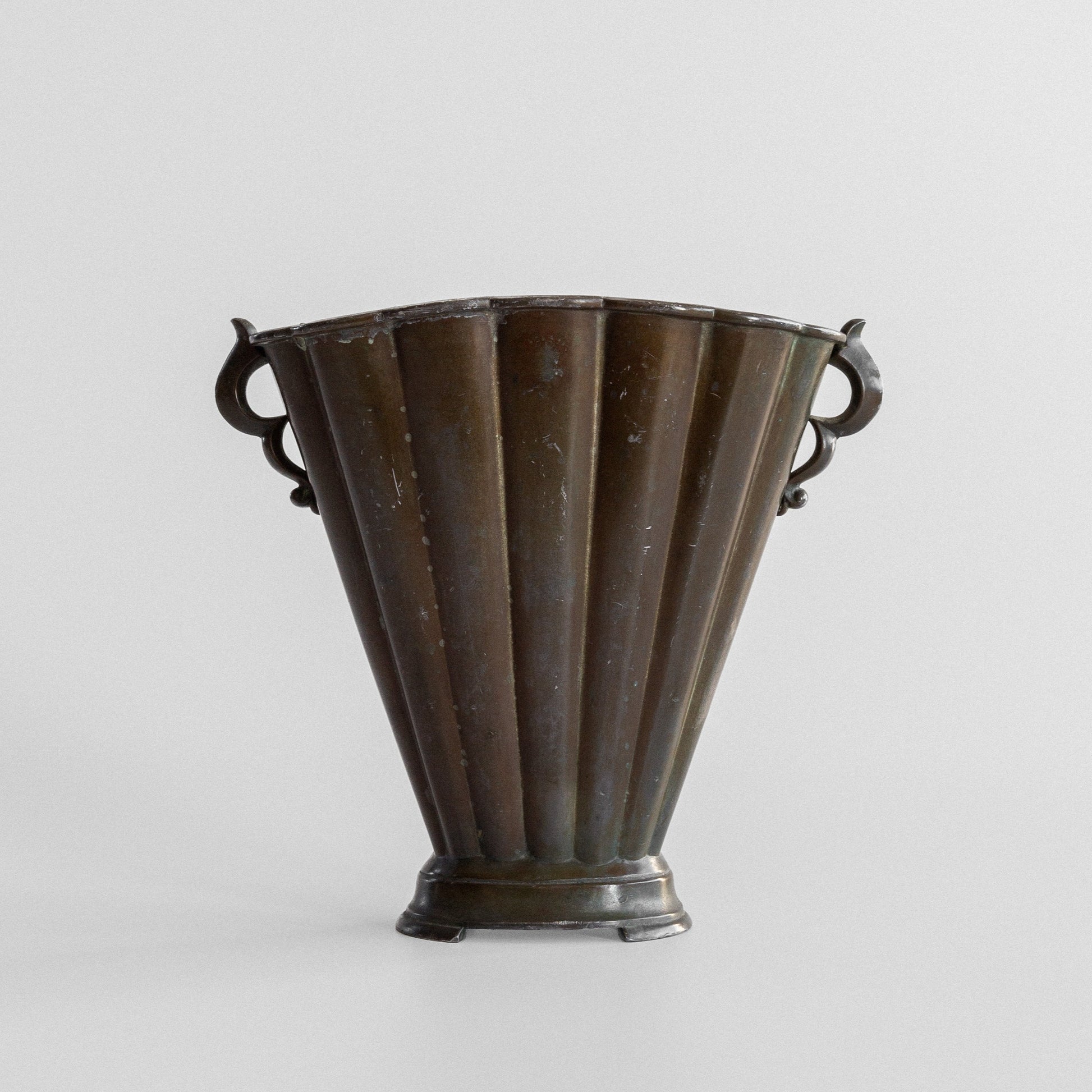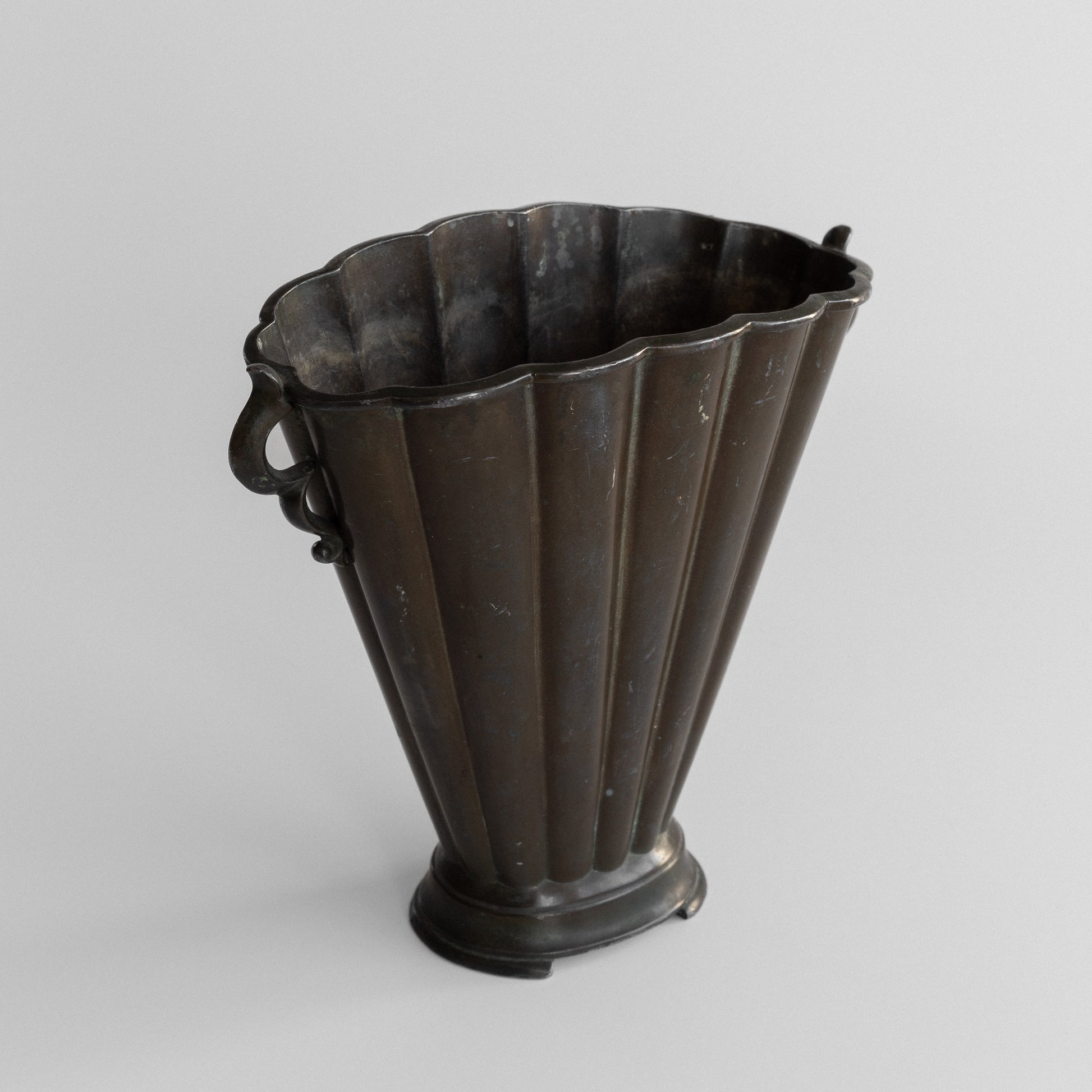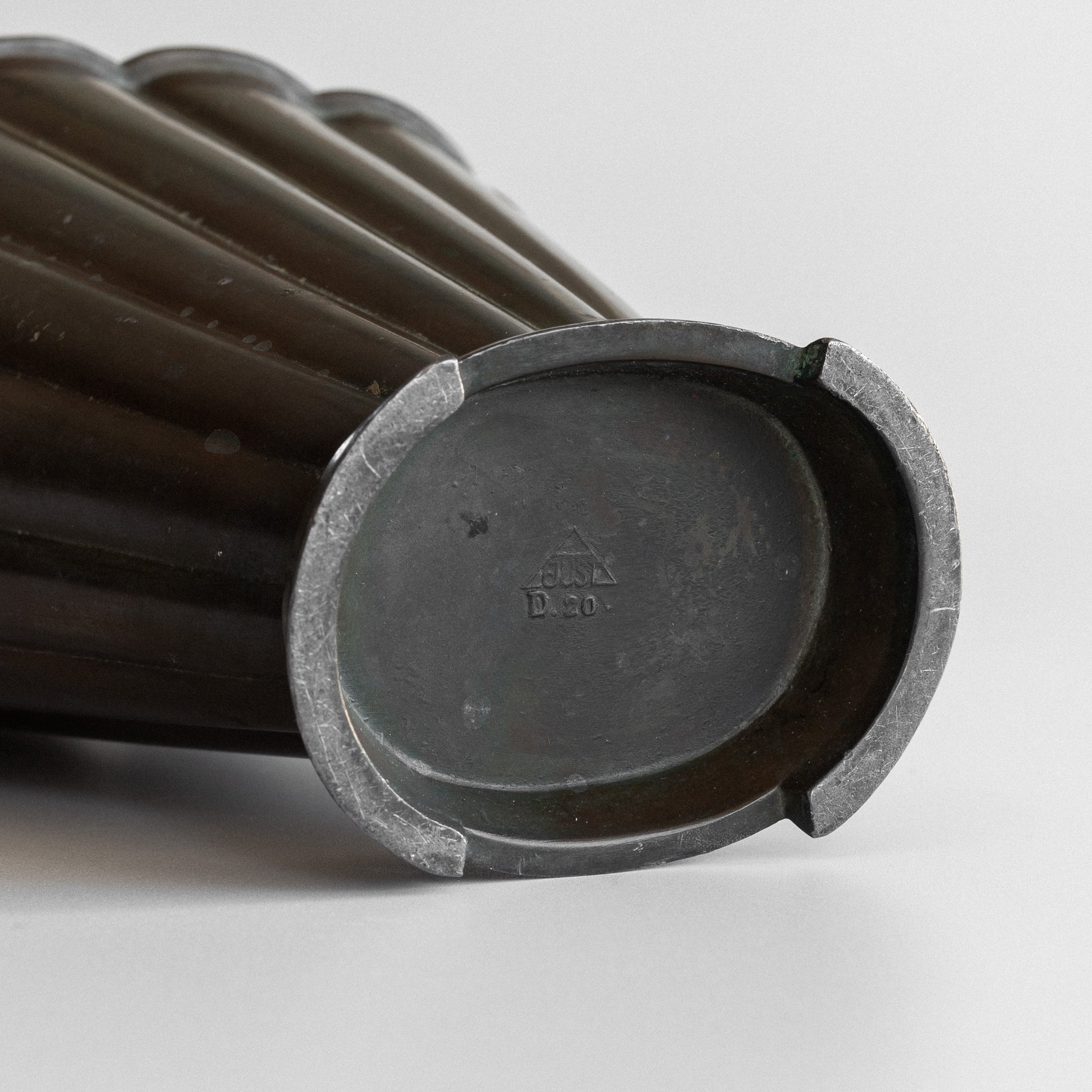 A sophisticated Art Deco vase designed by Just Andersen, Denmark, circa 1920s-30s. Crafted in his signature 'Diskometal' - a proprietary bronze-like alloy of his own invention.