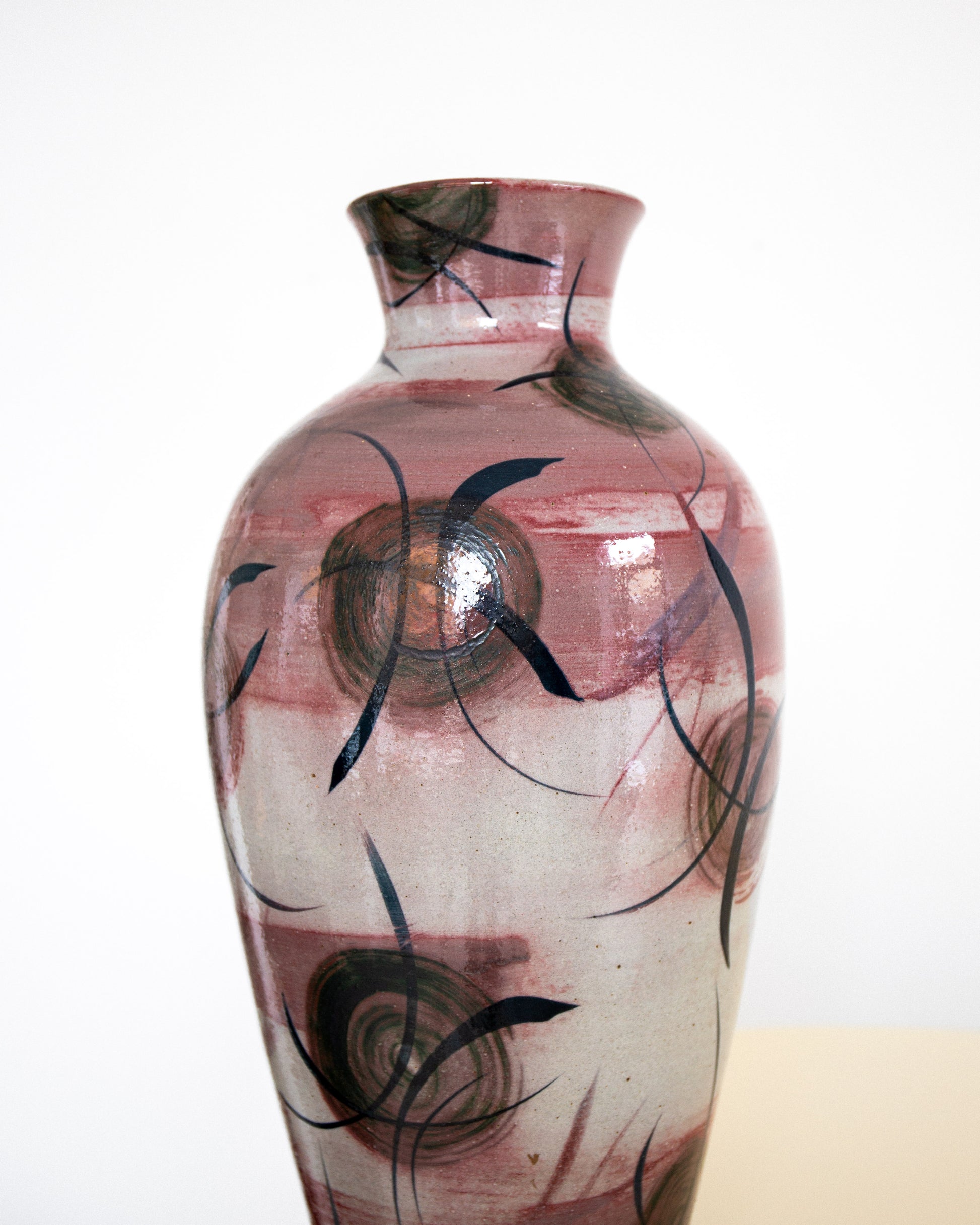 Large ceramic floor vase by Herman Kähler of Denmark, circa 1930s. Standing at 57 cm (22.4 inches) tall, this piece features a luminous purple glaze with expressive hand-painted brushwork that feels surprisingly modern. A beautiful example of interwar Danish ceramics at its best.