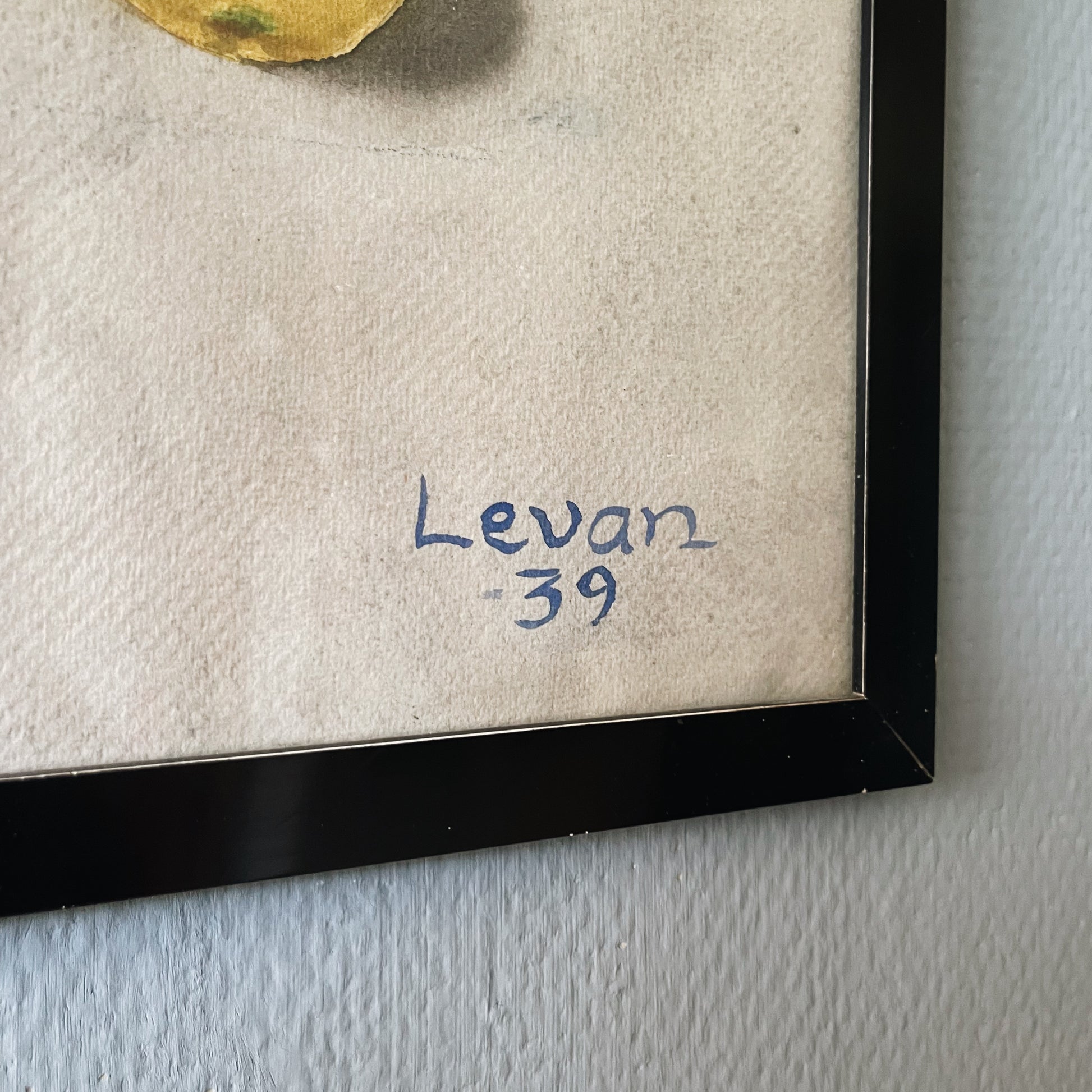 Charming still life in aquarelle, painted by an unknown (and perhaps untrained) artist named Levan. Signed and dated 1939.