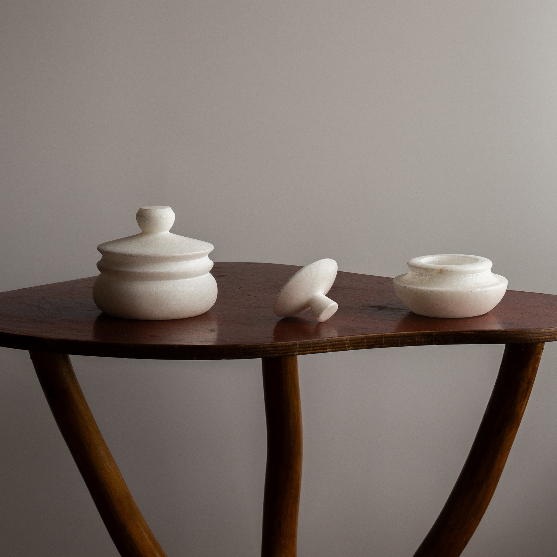 Set of two hand crafted lidded jars in Italian alabaster, c. 1970.