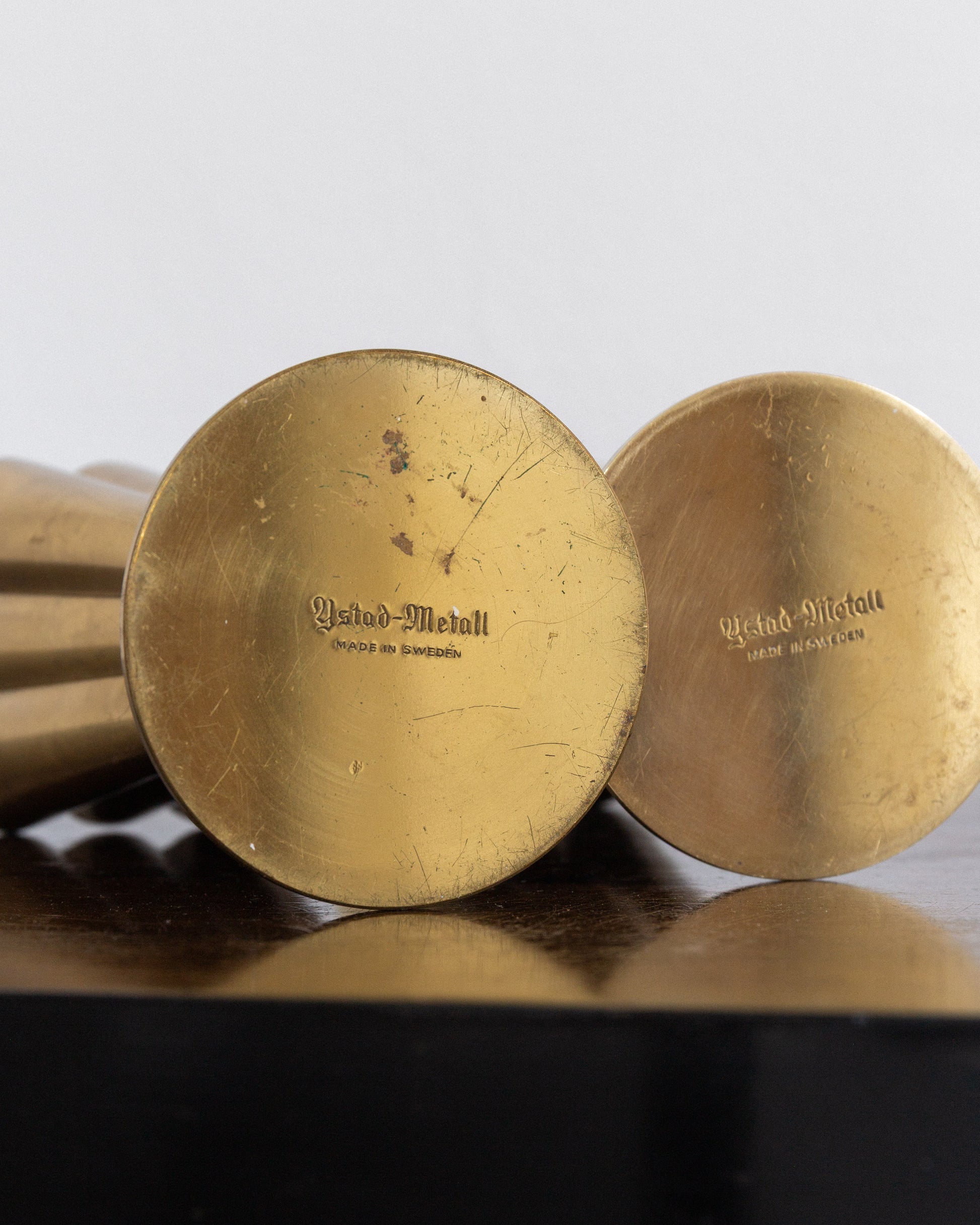 • Markings: Both vases bear the markings "Ystad Metall" and "Made in Sweden"