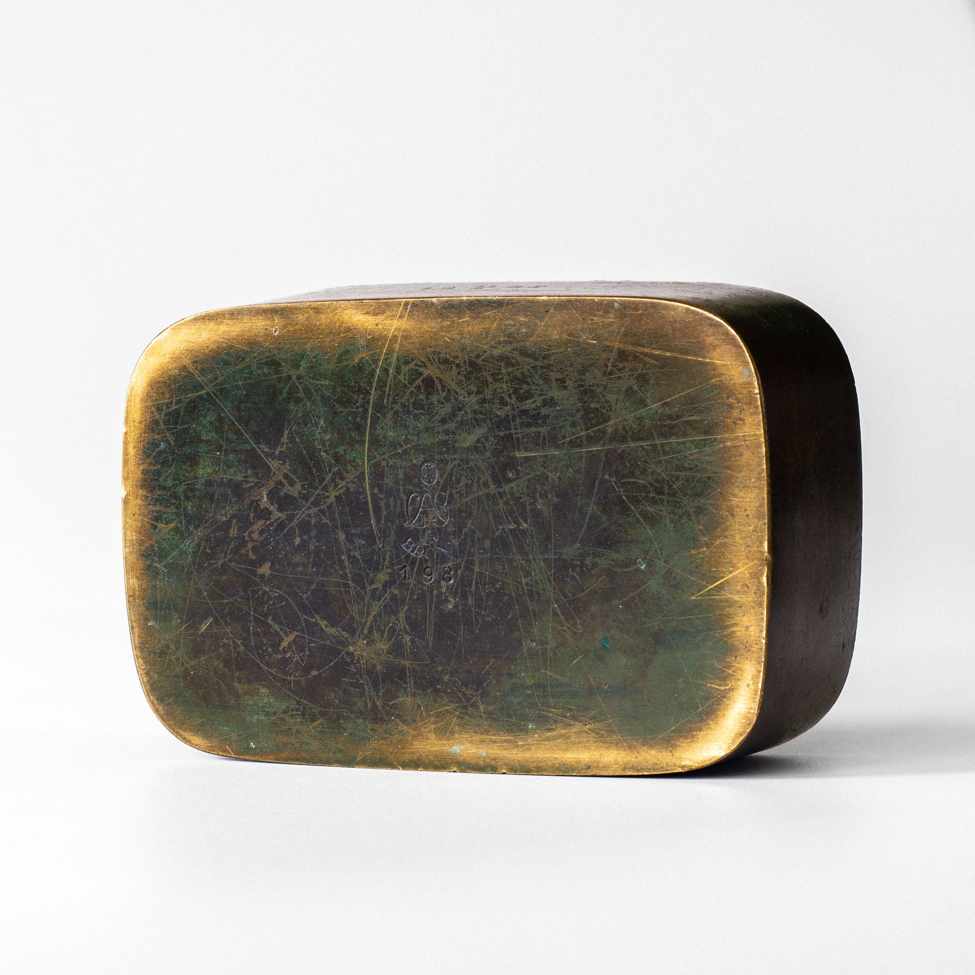 A distinguished lidded bronze box by silversmith Jacob Ängman for GAB (Guldsmedsaktiebolaget). Created in 1935, this piece exemplifies the refined aesthetic of Swedish Grace / Art Deco design.