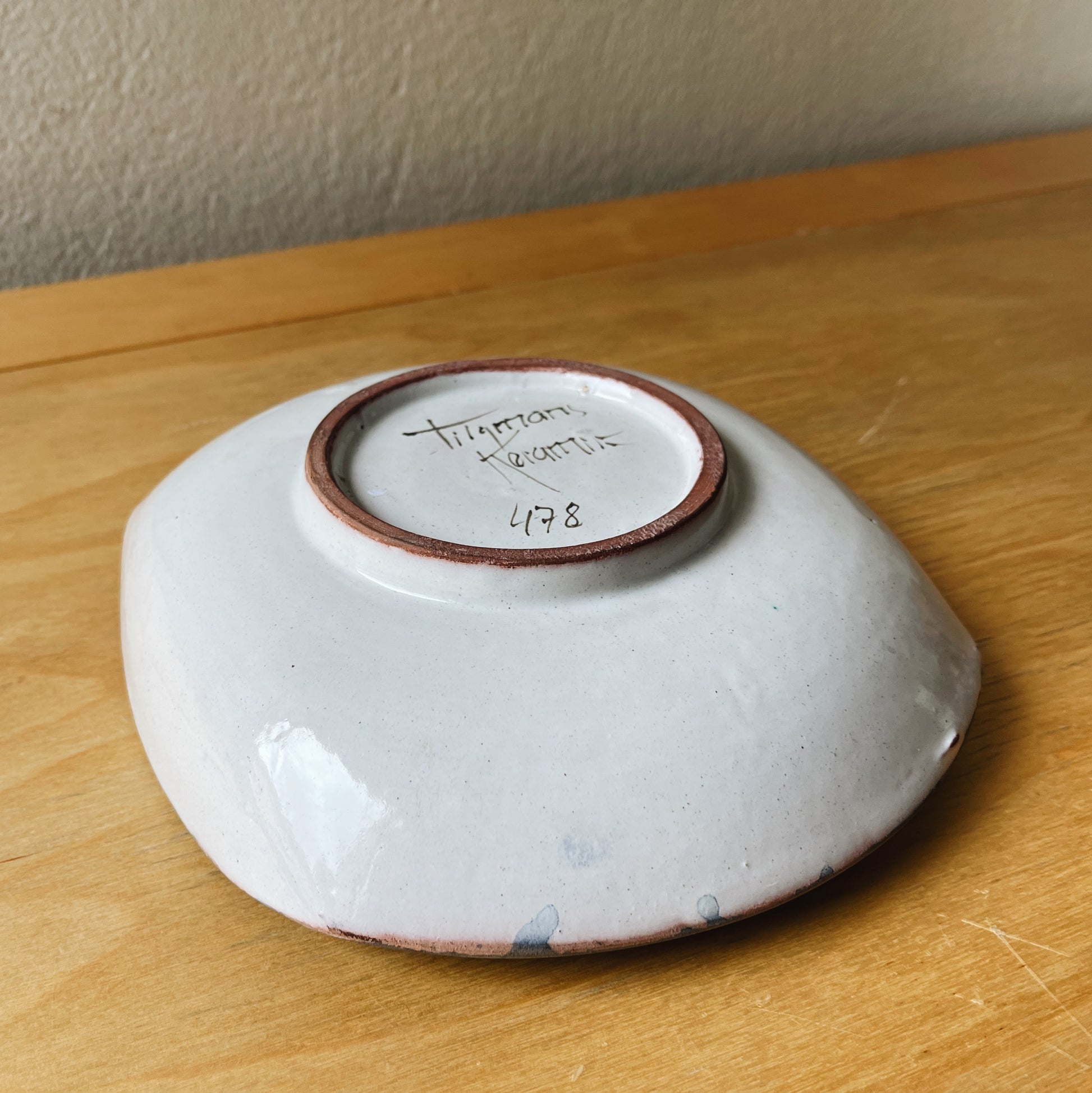 Ceramic plate / bowl by the Swedish manufacturer Tilgmans Keramik. Beautiful decoration in semi-glossy glaze of a fishes in lovely pale colours. The sides of the plate are a bit up folded which gives it a more three dimensional design.