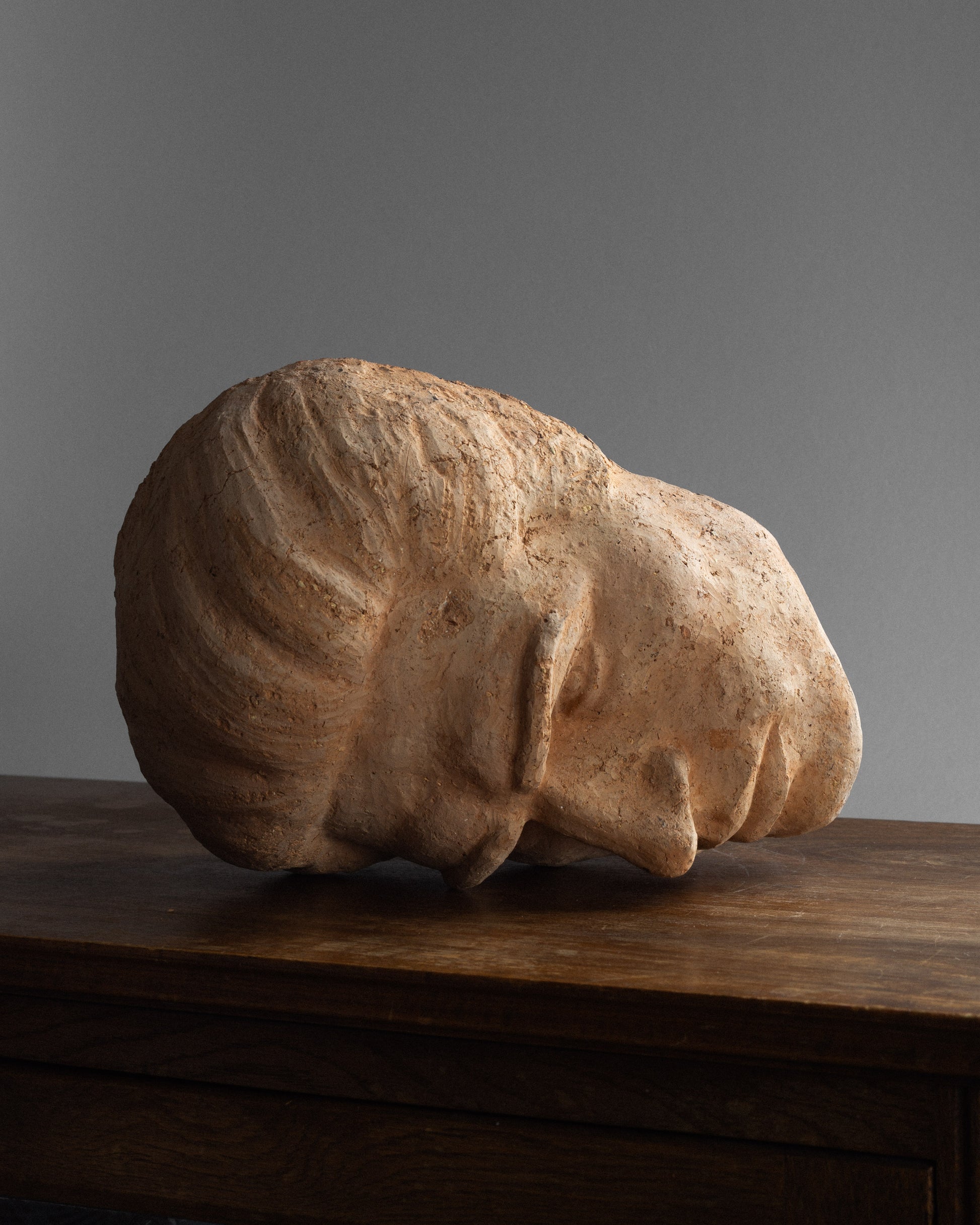 Life-sized ceramic sculpture by Swedish artist Holger Persson (1901-1961). Made of unglazed earthenware in the 1920s/30s. A great conversation piece ready to decorate your wall or tabletop.