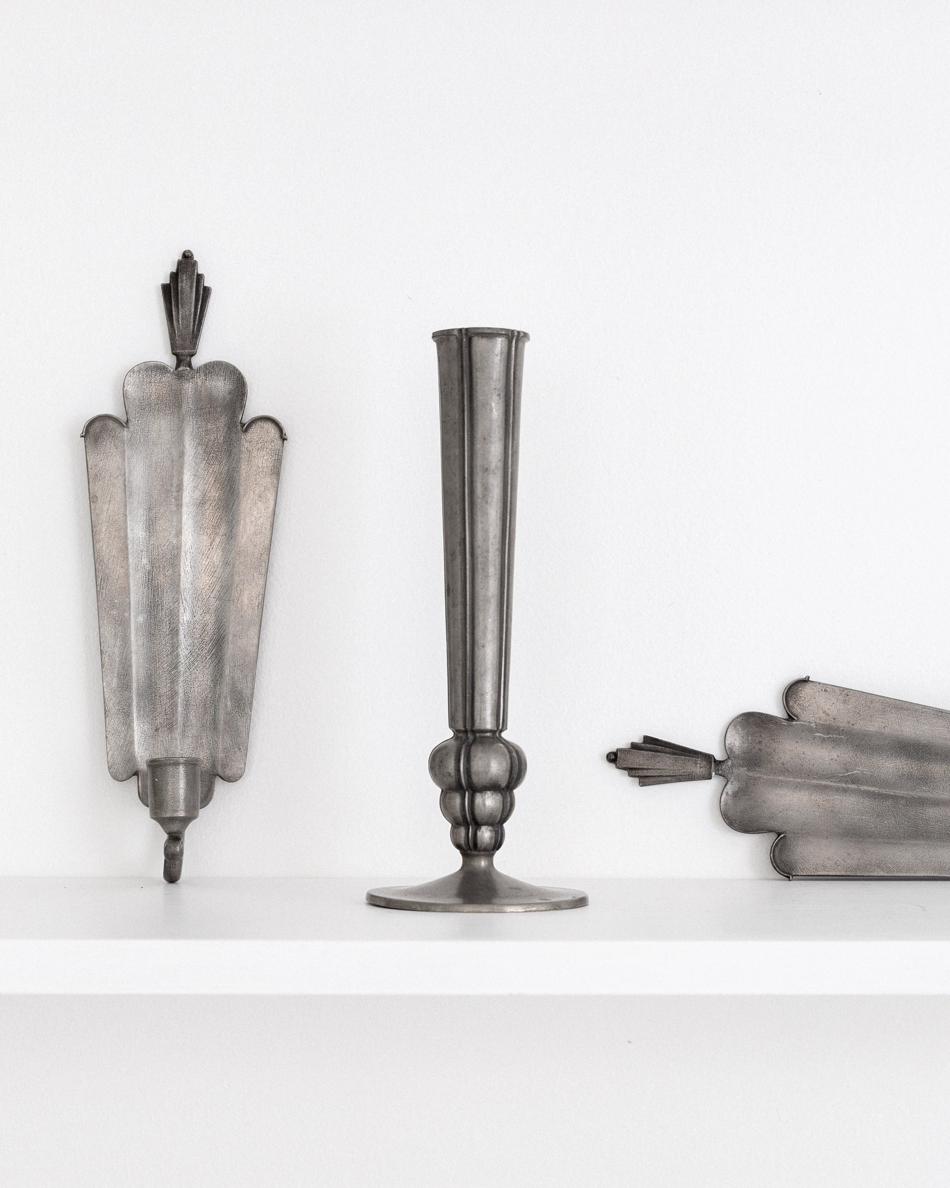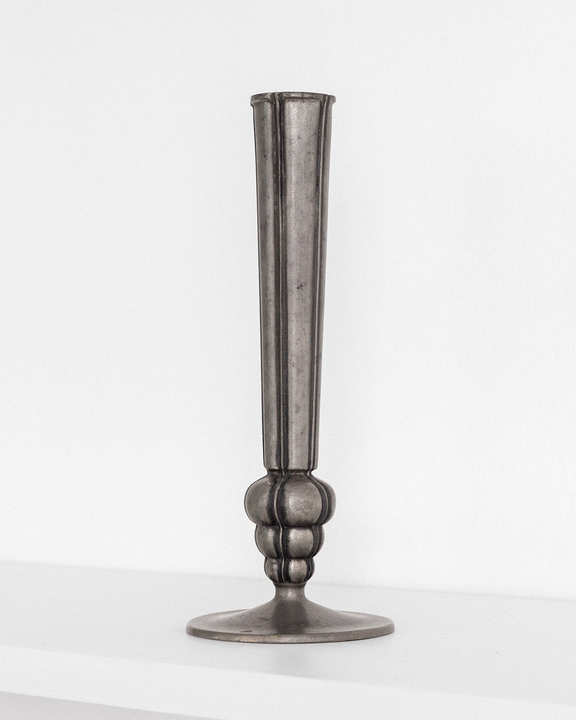 Cast pewter vase designed by Edvin Ollers for Schreuder & Olsson foundry, Stockholm. Dating to 1950, verified by the Z8 year mark on base.
