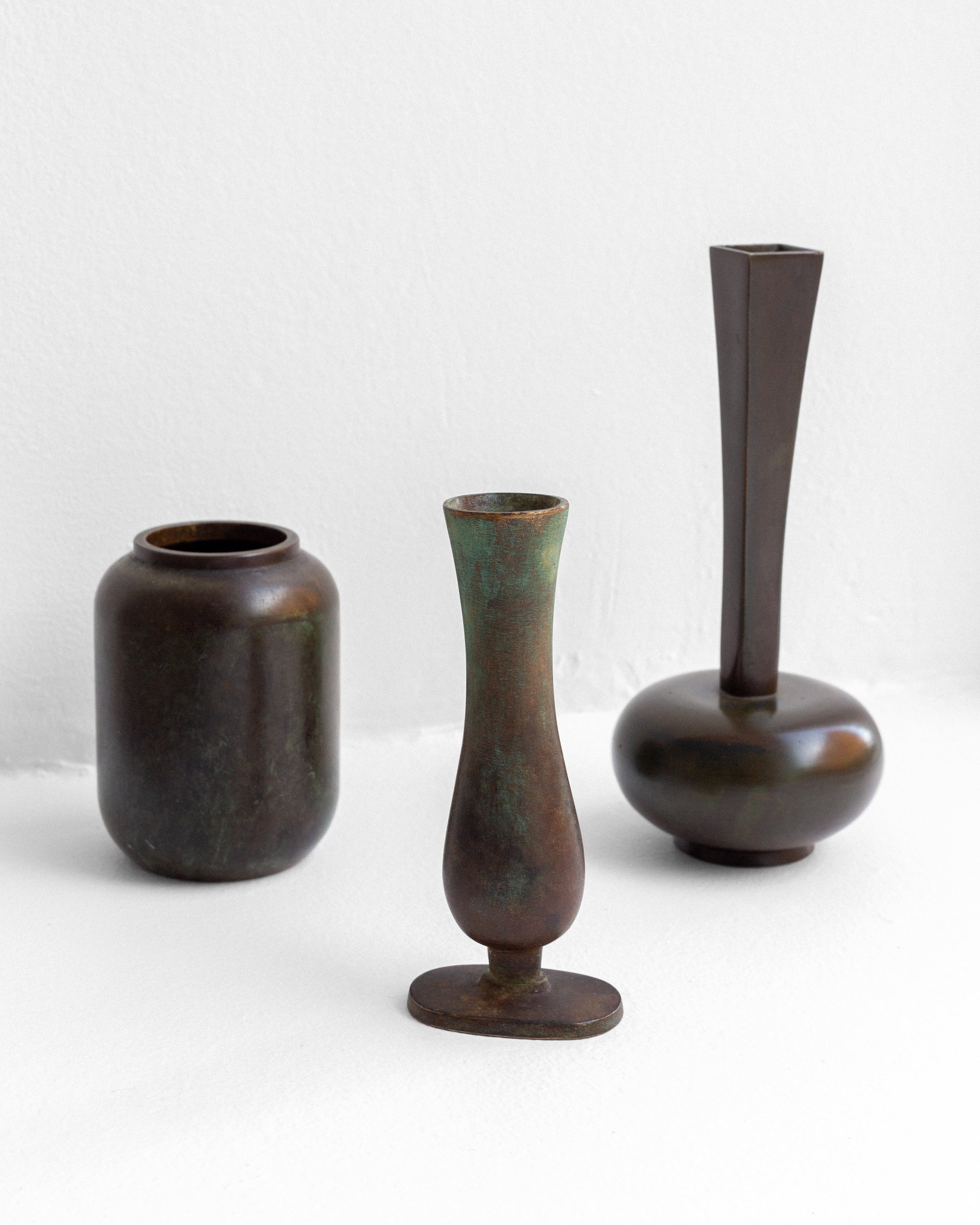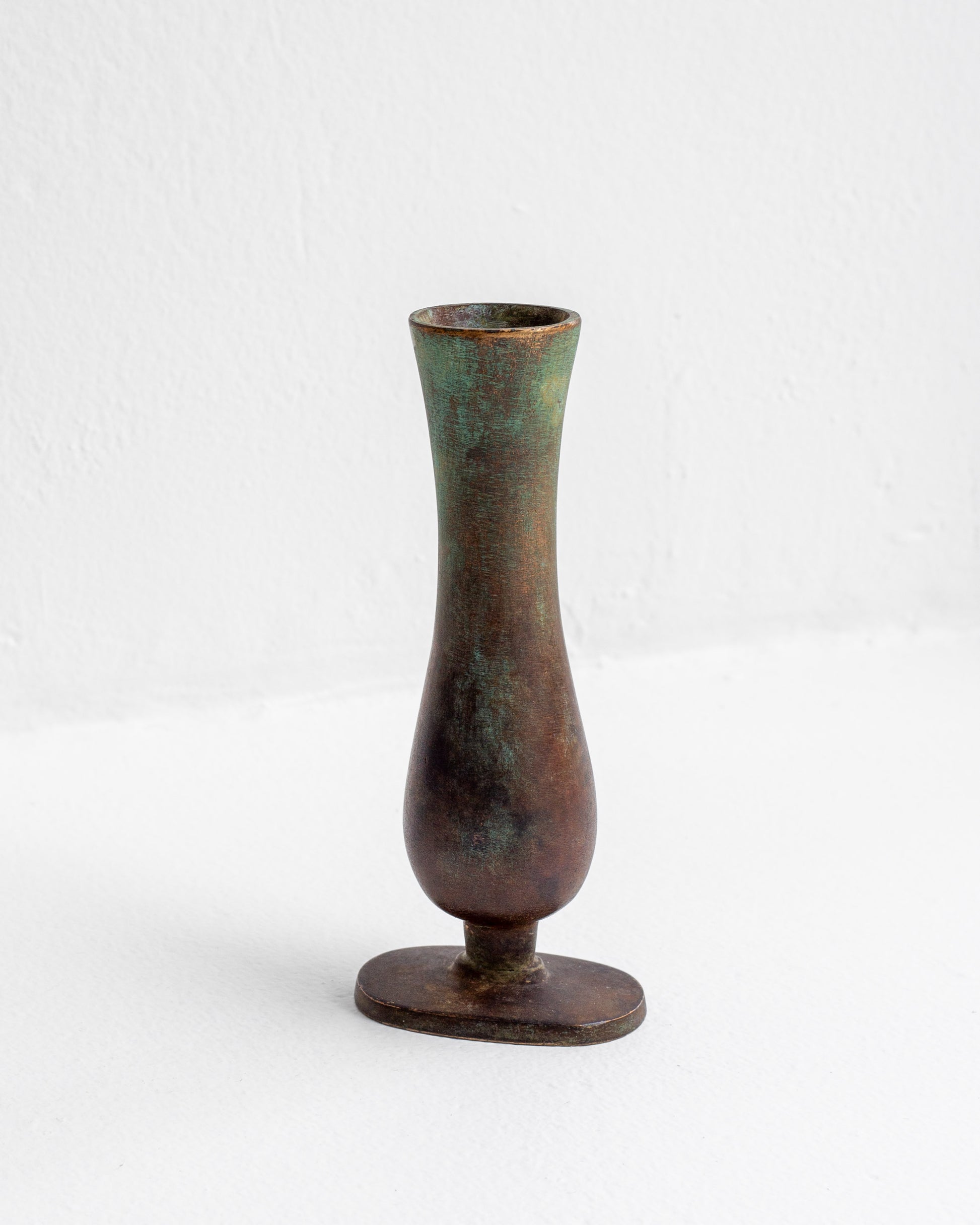 Patinated bronze vase by GAB (Guldsmedsaktiebolaget), 1930s. Beautifully balanced proportions with a rich patina that shifts organically between shades of green and bronze. The intimate scale make it perfect for single stem flowers.