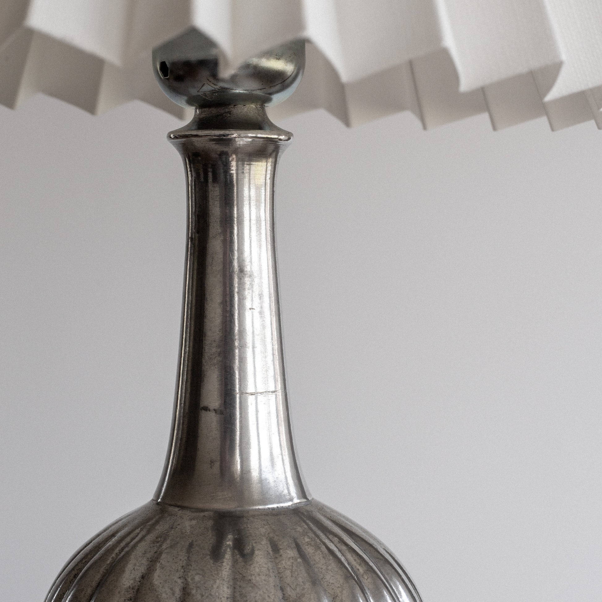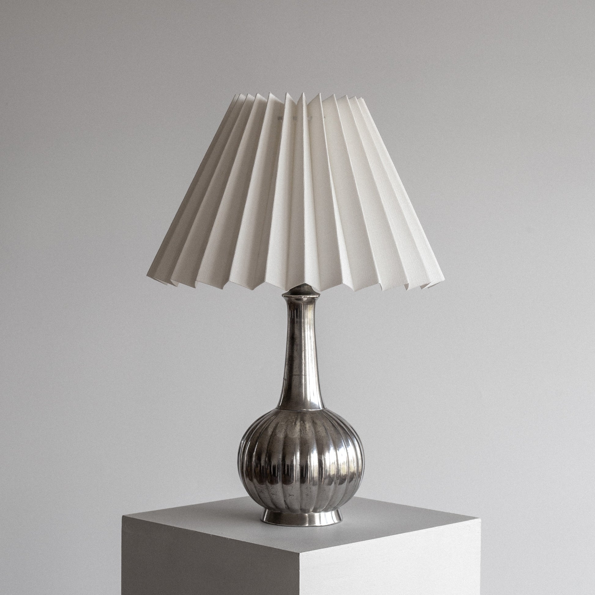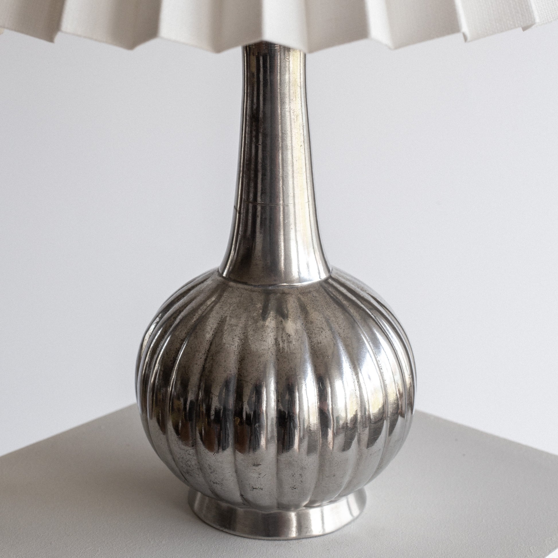 Crafted in the 1930s, this lamp features Andersen’s signature sculptural form with a fluted, bulbous base and elegant proportions. The pewter surface displays a natural patina, highlighting the timeless quality of early 20th-century metalwork.