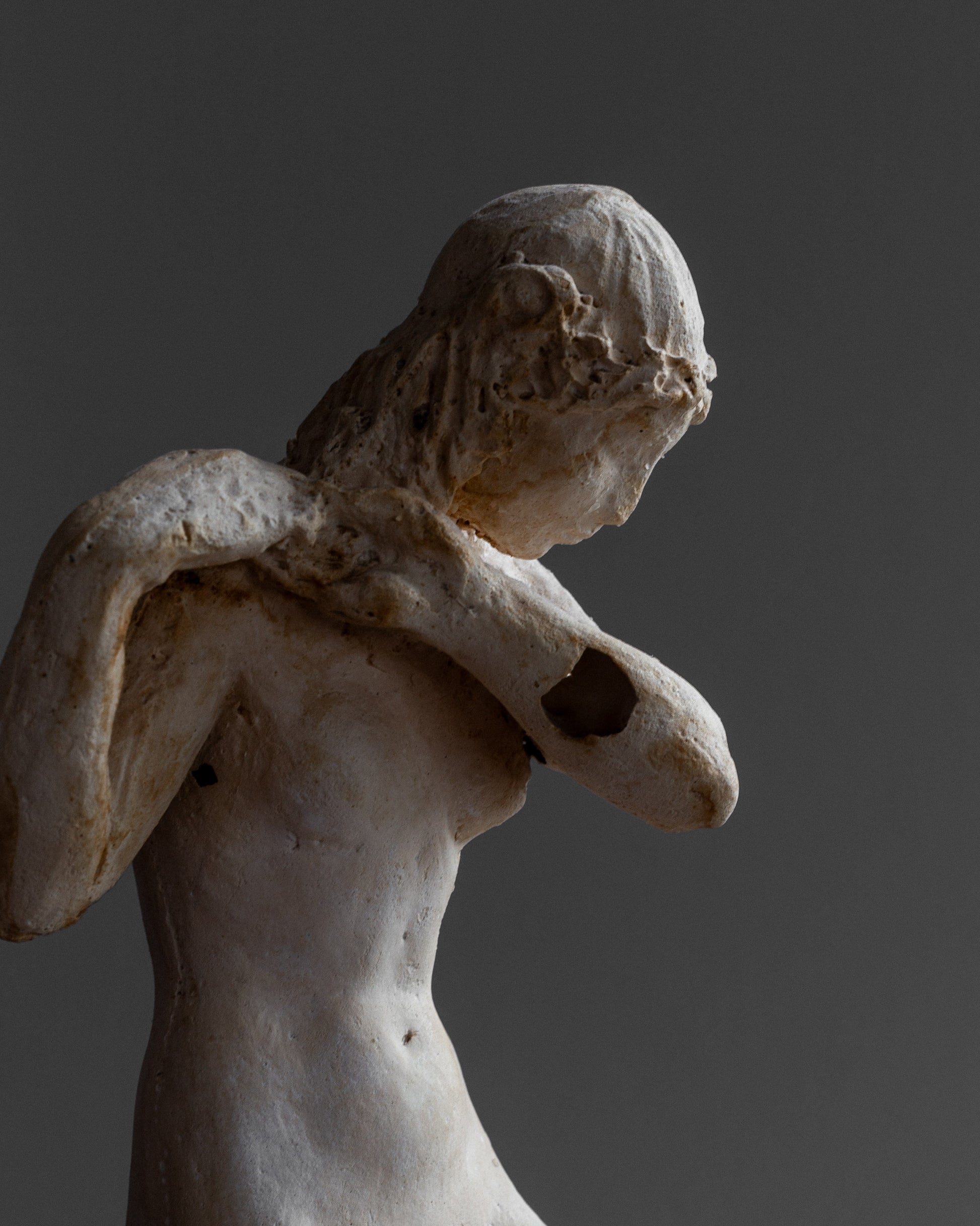 Captivating 1920s-30s plaster sculpture, likely of Swedish origin. Although the work is signed, the artist remains unidentified.