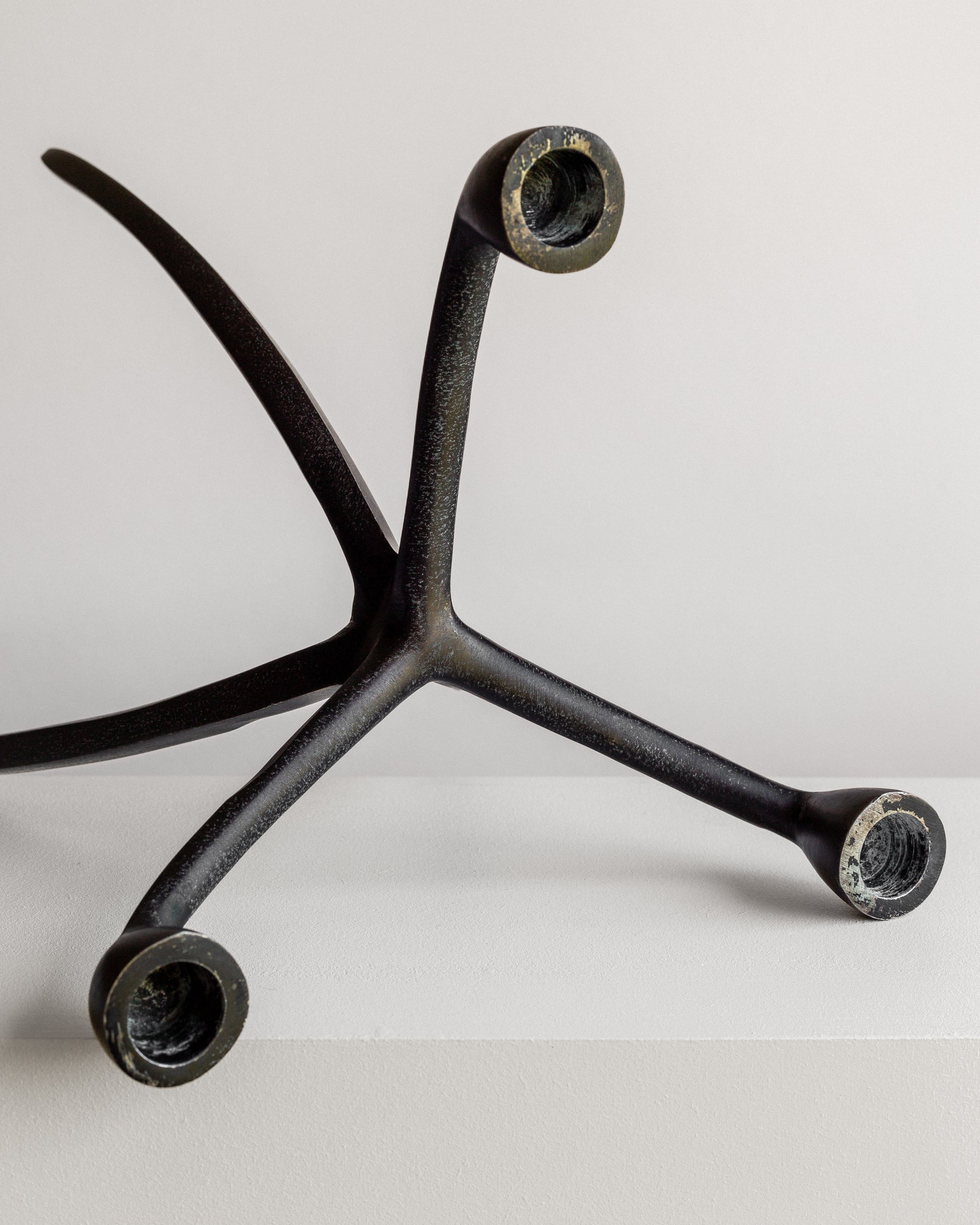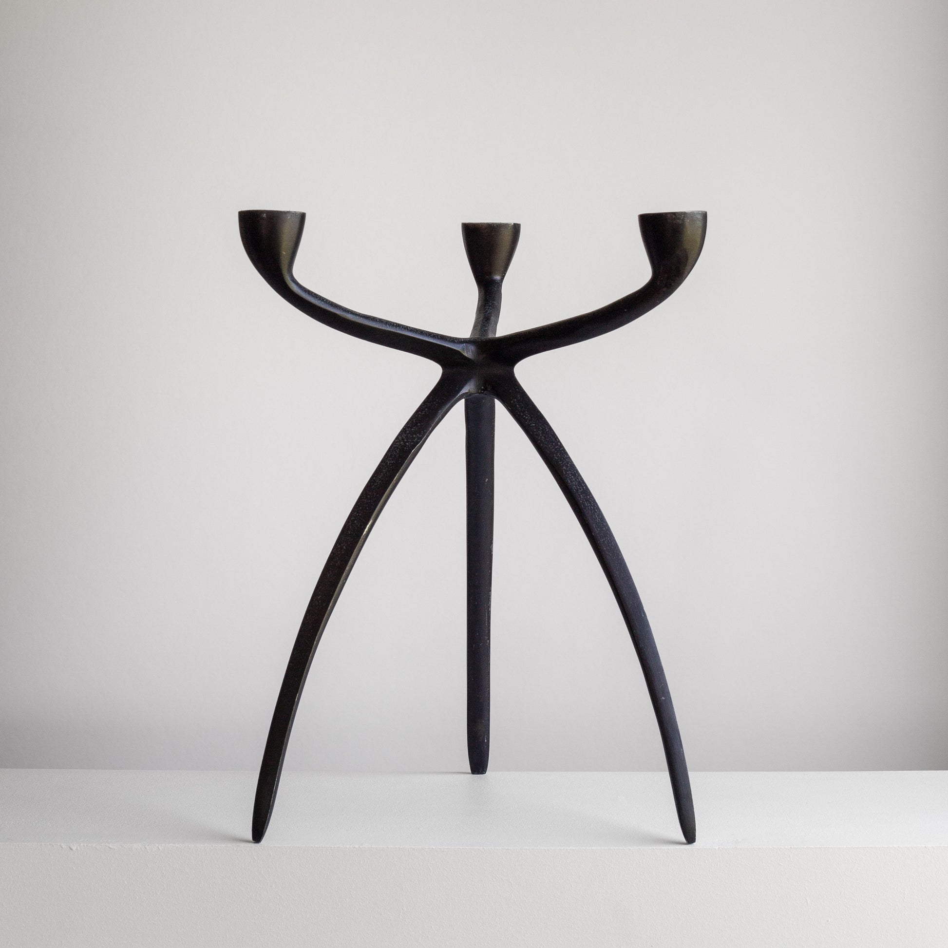 'Space Age Tripod' candlestick from the 1970's. Made in blackened aliminum and originally sold by the Dutch high-end department store de Bijenkorf.