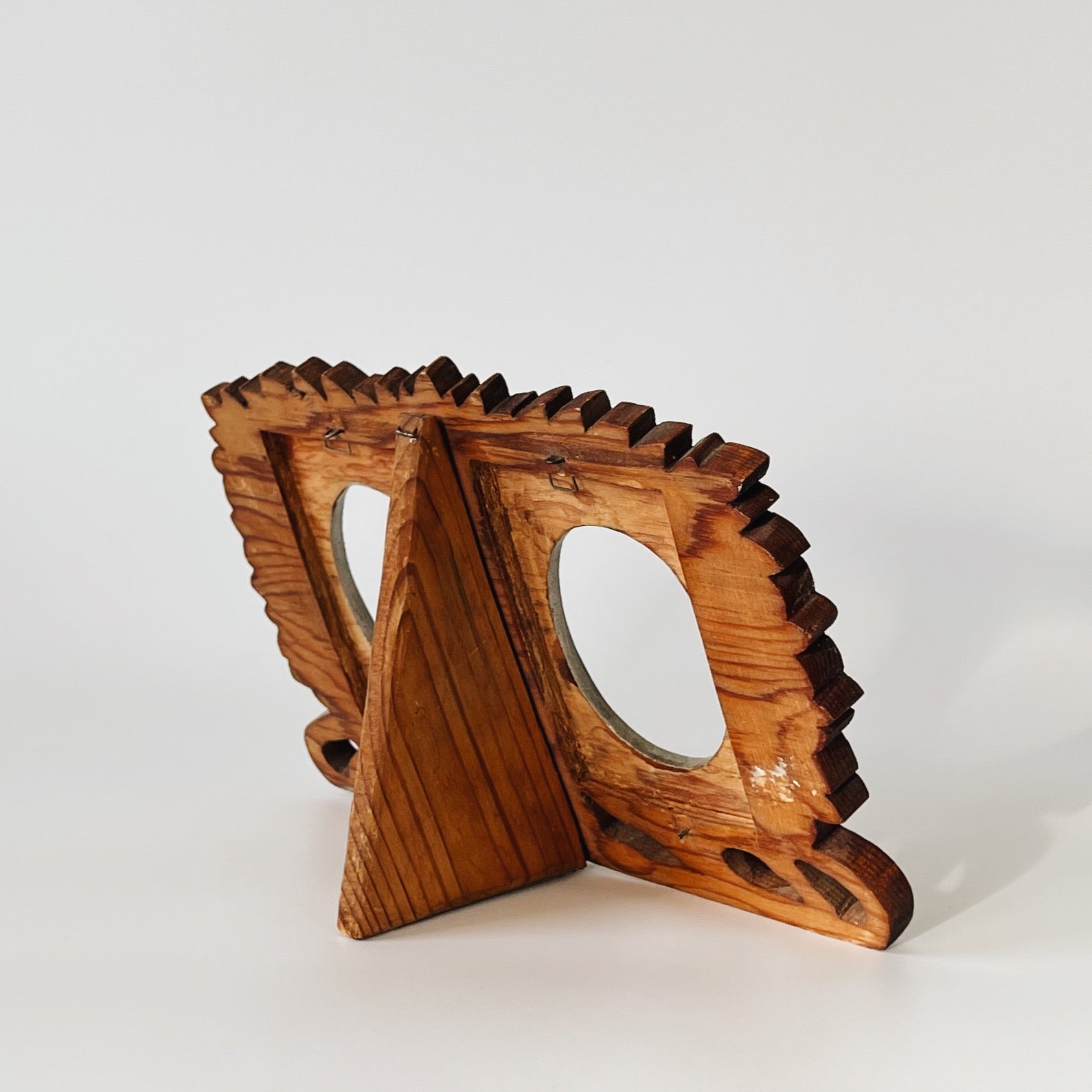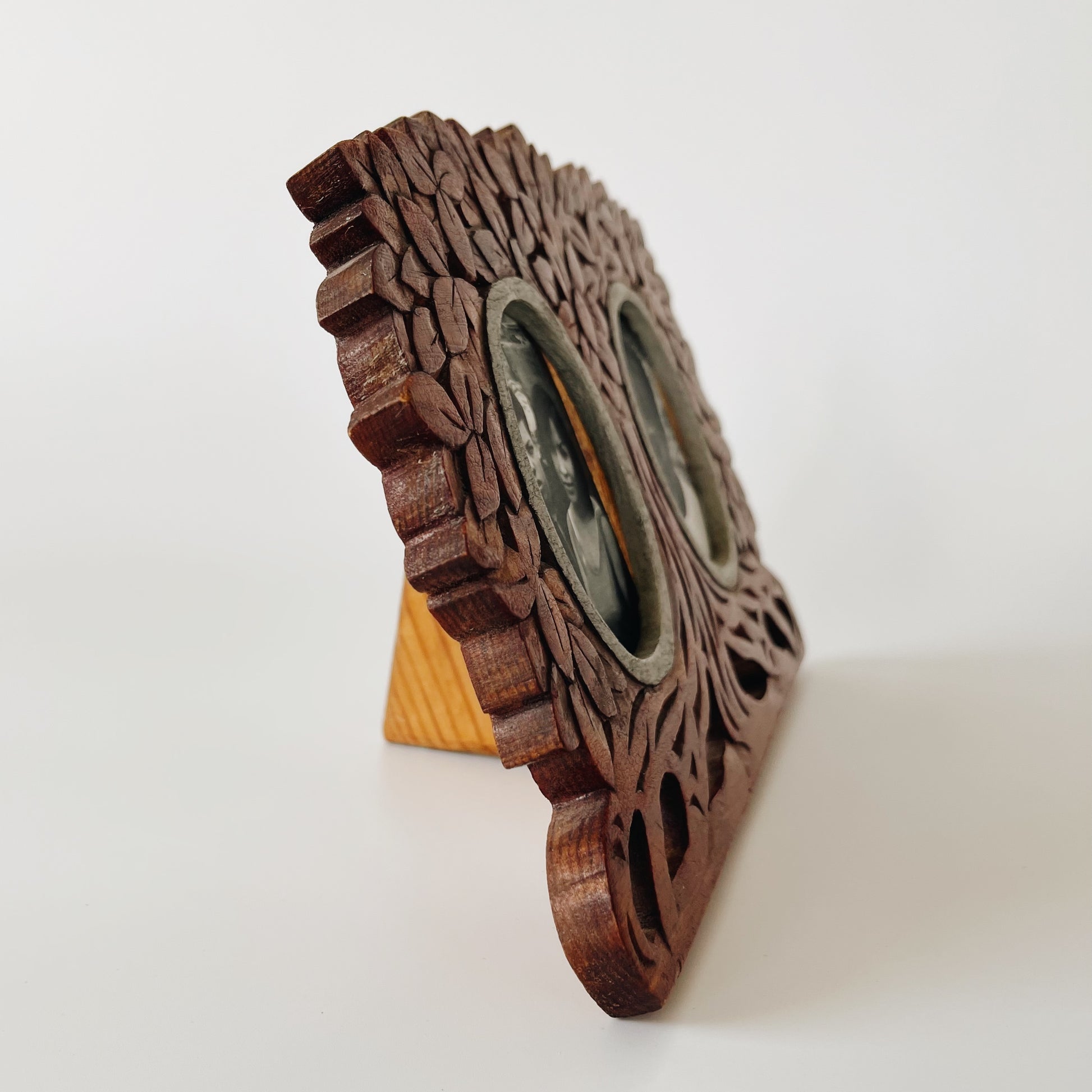 Hand carved wooden photo frame from the early 20th Century. This piece features a rich decor in the form of a flowering tree. An outstanding work of Swedish antique handicraft.